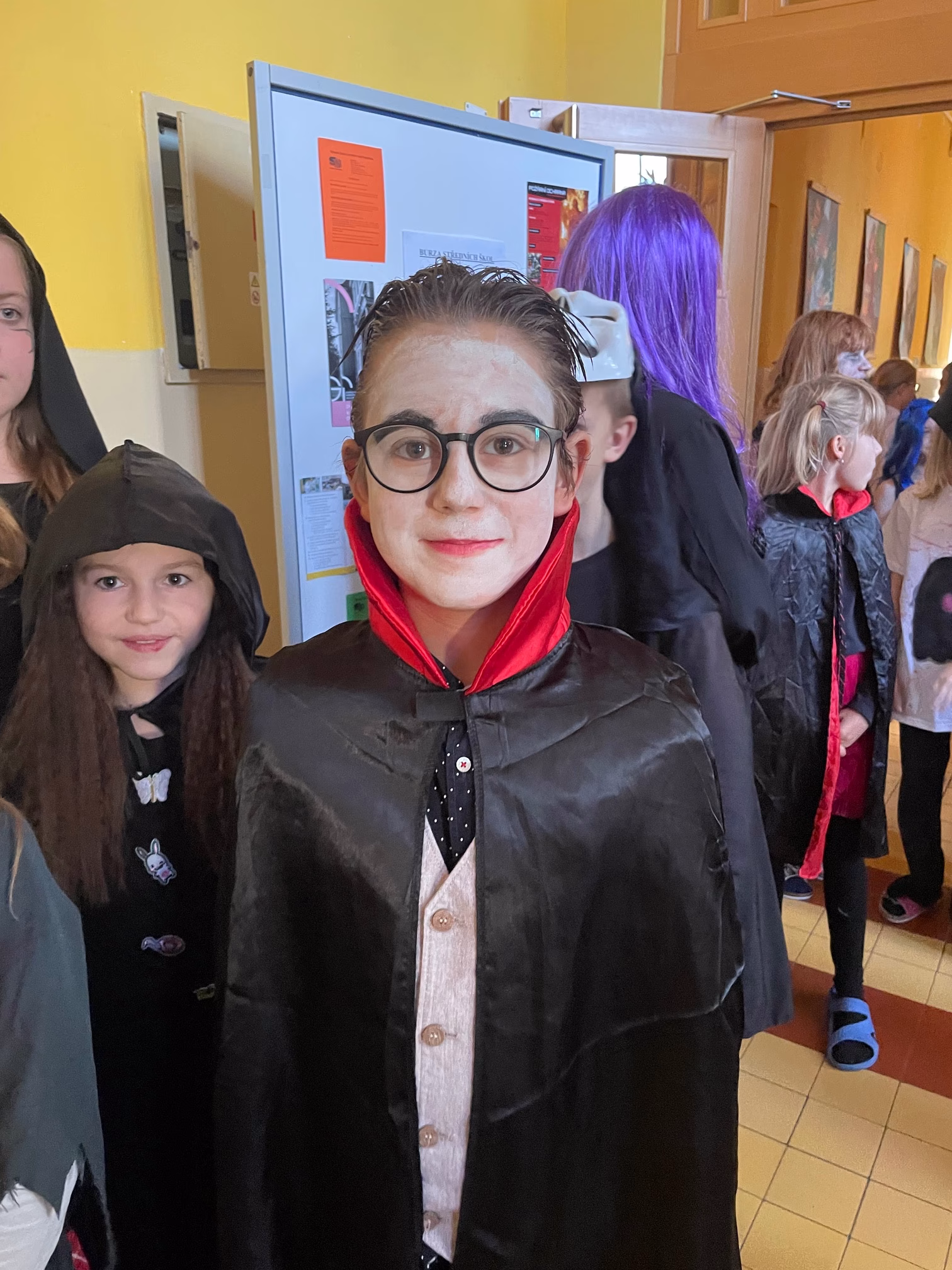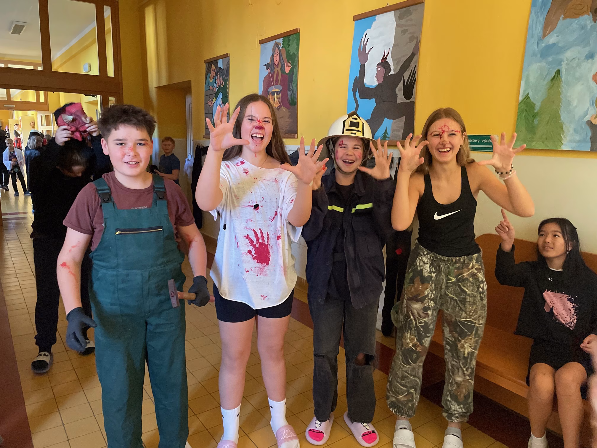 Oslava Halloweenu se pro svou oblíbenost stala již téměř tradicí. Každý rok mají třídy na druhém stupni za úkol vytvořit strašidlo na stezku odvahy a tak se nám strašidelná galerie rok od roku rozrůstá. 31.10. přišlo mnoho dětí v kostýmu, prožily tematicky laděnou výuku, prošly si stezku odvahy a o velké přestávce se mohly zůčastnit průvodu masek za zvuku halloweenské hudby.